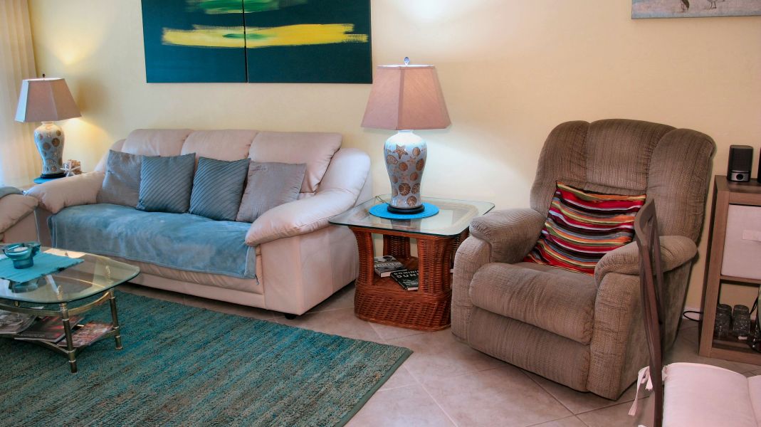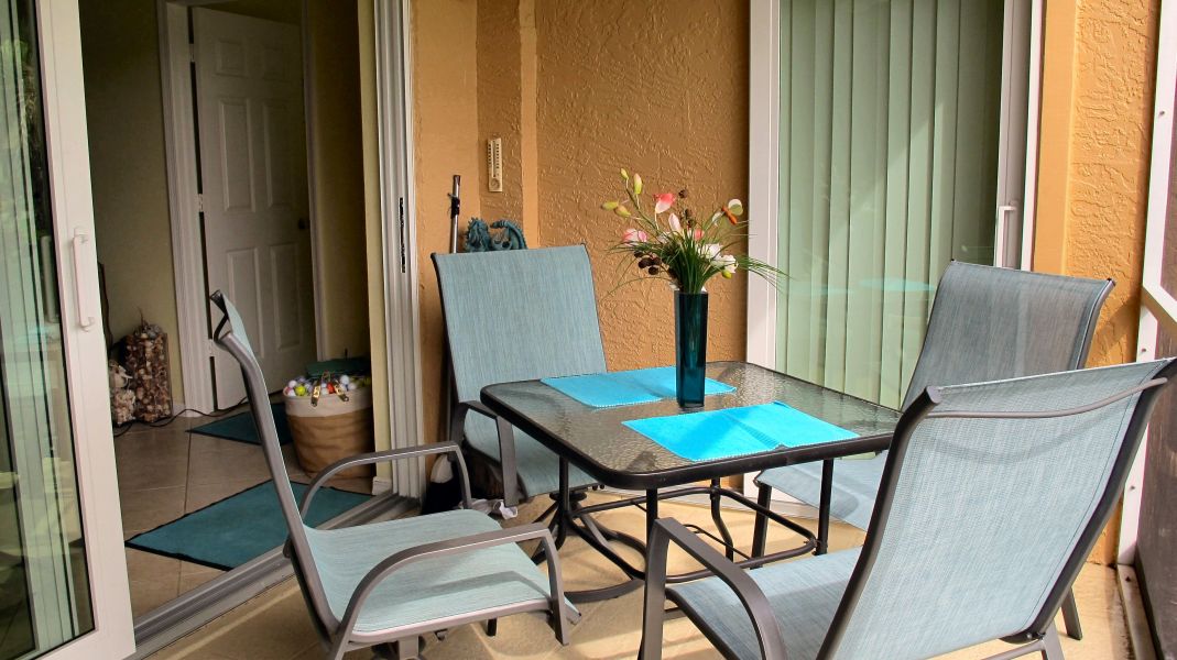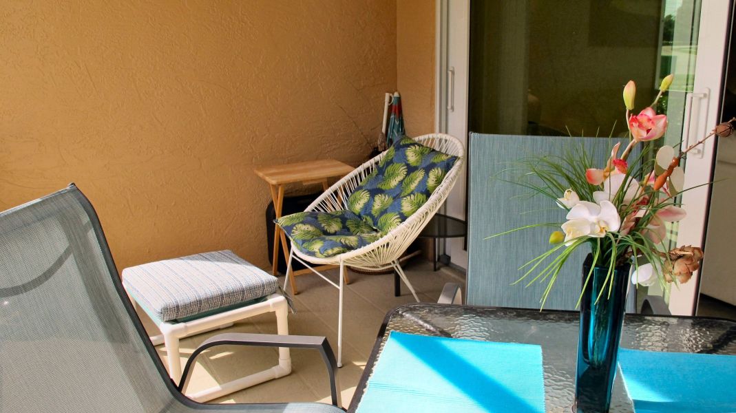 Comfortable furniture on Lanai facing South.