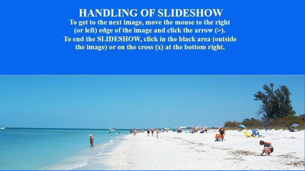 CLICK on picture to enlarge. Command Key F11 makes it even bigger. With the large picture a SLIDE SHOW is automatically activated. To go BACK and FORTH click on the LEFT or RIGHT side of the big picture. To finish the SHOW click on the darkened frame around the picture or on (x). Command Key F11 brings your screen back to normal.