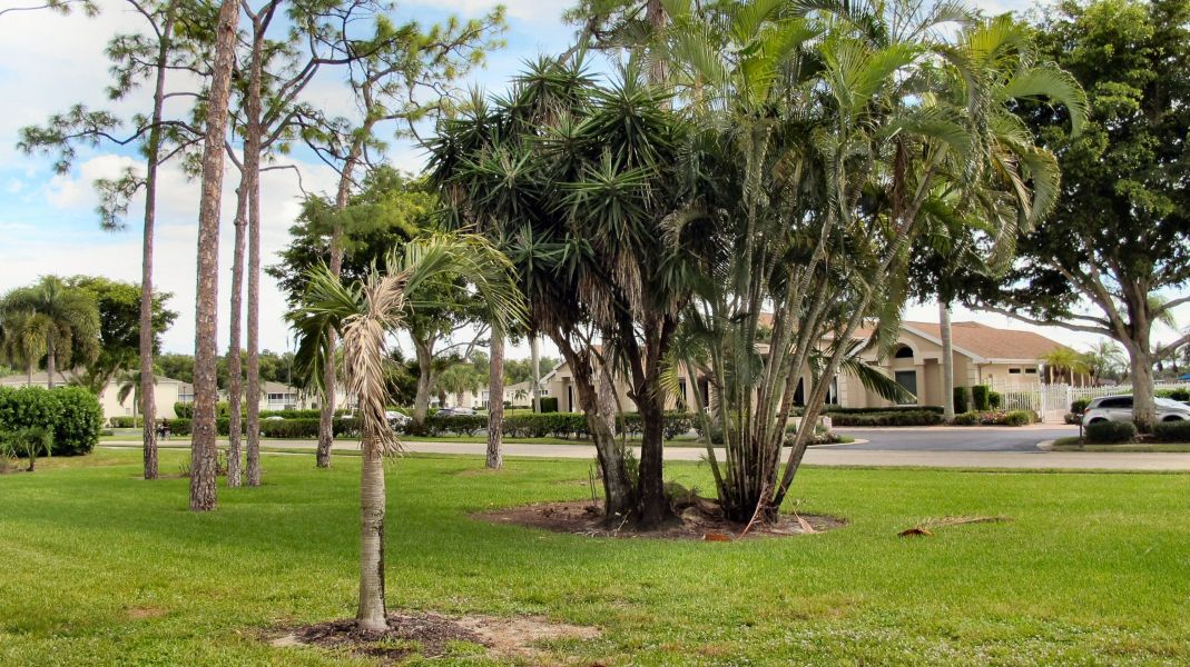 it is lavishly filled with palm trees and vegetation.