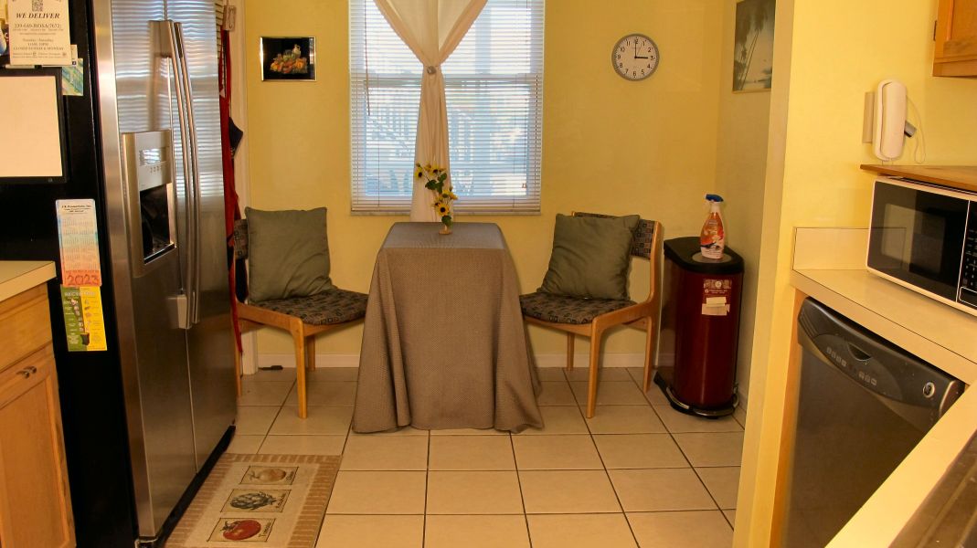 There is a breakfast area in the kitchen.