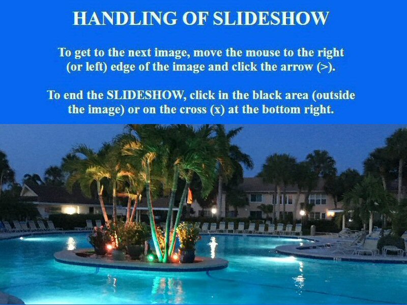 CLICK on picture to enlarge. Command Key F11 makes it even bigger. With the large picture a SLIDE SHOW is automatically activated. To go BACK and FORTH click on the LEFT or RIGHT side of the big picture. To finish the SHOW click on the darkened frame around the picture or on (x). Command Key F11 brings your screen back to normal.