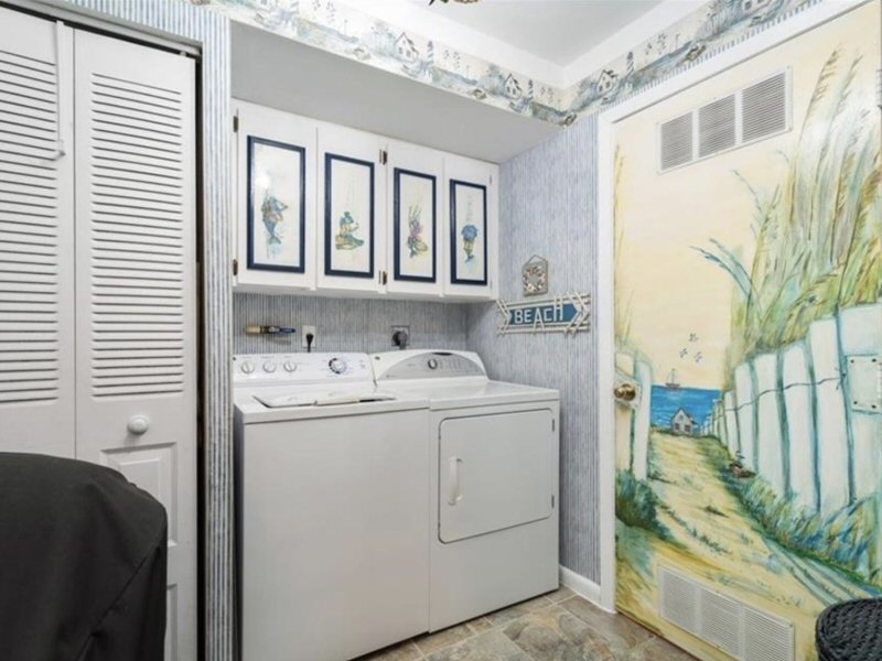 Right picture: Washer and dryer in laundry room.