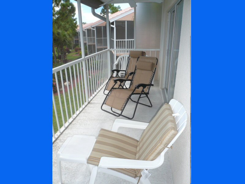 It has a terrace/balcony - called 'Lanai'. The lanai is screened - of course.